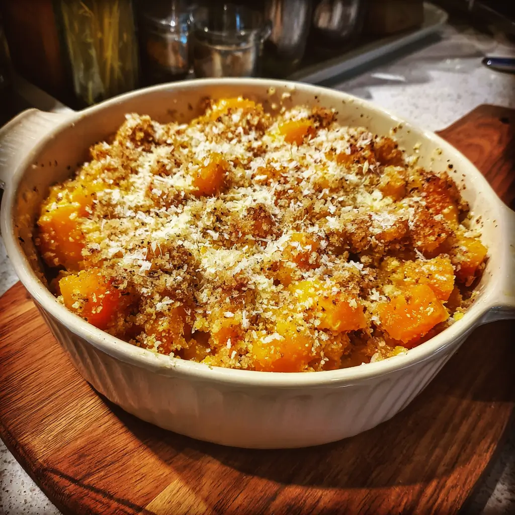 La courge doit s’écraser facilement à la fourchette mais garder sa forme pour que bébé puisse la saisir. Le crumble doit être doré et croustillant au toucher. Si la courge est trop ferme, prolonger la cuisson de 5-10 minutes en protégeant le crumble avec du papier aluminium.